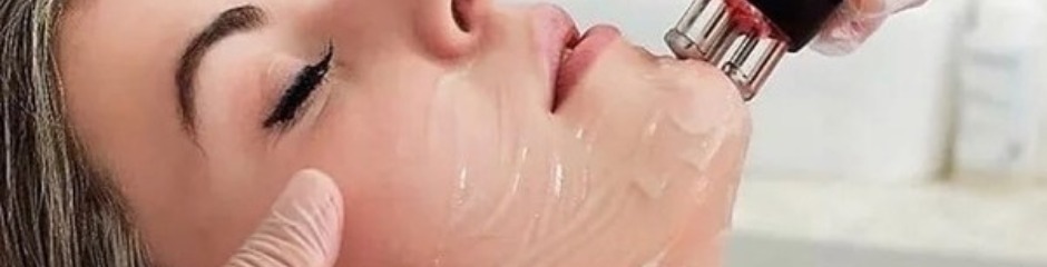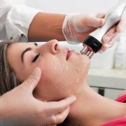 процедура RF-лифтинга лица (радиочастотного лифтинга) с использованием специального аппарата с манипулой. Косметолог обрабатывает кожу лица клиента, воздействуя на неё электромагнитными волнами высокой частоты.